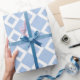 A cool geometric pattern of interlocking light blue and white diamond shapes. The white diamonds each contain a small baby blue diamond making pale blue the dominant color of the original design.