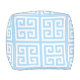 Light Blue and White Greek Key Pattern Pouf