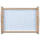 This stylish light blue and white geometric pattern is an original ornamental design. White meanders angle around pale blue diamonds containing white diamonds. Baby blue zigzags provide subtle separation between the winding paths.