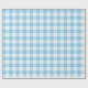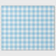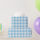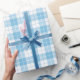 A wrapping paper designed with a light blue and white plaid pattern. Customize the white background among other options.