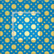 Seamless pattern with multiple shades of yellow polka dots in variable sizes on a blue background color. Change the tile size to make the pattern appear bigger