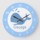 Big light blue big whale clock with custom baby name. Cute gift idea for girl's baby room. Baby blue nursery decoration with personalizable name. Sealife animal print. Large size.