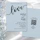 Light Blue Black Love Script Minimalist Wedding Invitation with QR code. This minimalist design features elegant script and clean typography, making it the perfect choice for the stylish, contemporary couple. Lovely atmospheric blue with contrasting black script brings modern sophistication. The back features a QR code to link to all your wedding details. If you prefer, delete the text and QR code for a plain card back. Use capital letters when inputting your names, as shown in the sample, if you like the design as is. Contact the designer for any customization questions