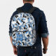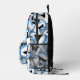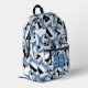 This fun volleyball backpack features a random pattern of varied size light blue, black & white volleyballs turned every which way on a customizable white background - personalize with the athlete's name & jersey number - by katz_d_zynes
