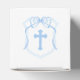 Light Blue Bow Crest Baptism Cube Favor Boxes