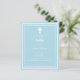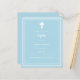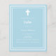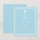 A light blue background, decorated with a white frame, and a white cross Personalize and add the name and details. White text.