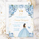 This elegant and glamorous birthday party invitation features a beautiful princess with brunette hair in a light blue ball gown. The text combines handwritten script and modern sans serif fonts for a classy and sophisticated look. The floral arrangements, butterfly and gold confetti create the perfect blend of rustic and chic.