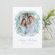 Light Blue Christmas Greenery Wreath Holiday Card