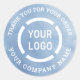 Personalized business stickers with customize company logo, name and message on watercolor light blue background, modern and trendy.