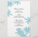 The pretty Light Blue Daisies Wedding Menu can be personalized with the names of the bride and groom, venue location, date and details of the meal that you will serve at your bridal shower luncheon, marriage reception dinner or post wedding brunch. This elegant custom flowery wedding menu features lt blue daisies adorning the corners with a white background.