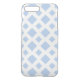 Protect your iPhone 8 Plus/7 Plus with a case featuring a stylish, geometric pattern of large and small light blue diamonds on a transparent background. The white forms a lattice which separates the baby blue diamond shapes.