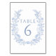 Light Blue Floral Bohemian Wedding Table Numbers