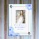 Elegant light baby blue and floral design that can be easily personalized! This luxurious design features gray and light blue flowers. Photo template via Pixabay licensed under CC0 and must be replaced with your own photo