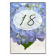 Blue floral table number cards with numbers on both sides. Vertical, with light blue hydrangea flowers and black numbers on white oval panel. The off-white graphic background color can easily be removed. Change the numbers on each card as needed.