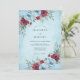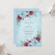A soft watercolor wash in icy blue sets a serene and chilly tone. Rich burgundy roses provide a striking contrast against pale blue blossoms and frosted greenery. Delicate sprigs of eucalyptus and deep-toned berries add texture to the arrangement. This aesthetic combines moody elegance with timeless botanical beauty.