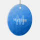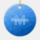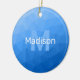 Light blue ombre geometric mesh pattern Monogram Ceramic Christmas tree Ornament. Monogram Personalize with your custom initial and name. Triangle geometric mesh with light dark blue ombre gradient modern design.