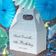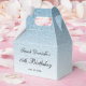 This beautiful favor box features faux glitter and your custom text. Use the template form the add your information. The "Customize Further" feature can be used to change the font and the text layout. You can also add text to the other side of the favor box.