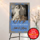 Periwinkle custom personalized anniversary welcome sign with photo. This image will easily convert to 20 x 30 or 24 x 36 sizes. • Scan your photo on a printer/scanner or flat bed scanner at 600 dpi (resolution) or the highest resolution you have. If you can only take a picture of a photo, tape the photo to a wall and get on eye level with the photo, take it in strong light as cell phones add grain to images, then save the photo at the largest size, may say large, actual or have a pixel size around 2400 x 1200 the larger the better.