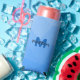 Light blue gradient geometry mesh pattern Monogram Seltzer Can Cooler