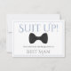 Use this "best man proposal card" to ask your special friend, brother, or other family member to be the best man at your wedding. Designed to coordinate with our Blue & Gray Elegant Wedding Suite, it features an image of a black bow tie on a white background and says: Suit Up! Your Services are Requested as Best Man" There is a space to enter a special note asking "will you be my best man?" as well as the wedding couple's names and wedding date. All fields are fully customizable.