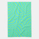 Light Blue & Green Warped Checkerboard Pattern Kitchen Towel