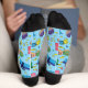 This fun Halloween socks are bright and colorful. The small print is crisp and shows the fun details. The softness of the socks feels nice on my feet and ankles. .