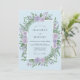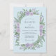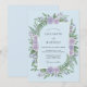 This design features a lush watercolor arrangement of lavender roses and vibrant green ferns set against a soft powder blue. The botanical elements create a serene and romantic atmosphere, perfect for a springtime forest event. The color palette combines cool pastels with rich leafy greens for a graceful aesthetic.