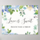 Welcome guests to your wedding with Light Blue Hydrangea Love is Sweet Poster, featuring lush watercolor botanical greenery and white flowers, with "welcome to our happily ever after," your names, and wedding date in a chic mix of modern block and hand lettered calligraphy typefaces.