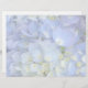 Hydrangea wedding program blank paper. Print your own wedding program on this 8.5 x 11 inch designer paper. Light blue hydrangea flower petals cover the background. The image will be seen on one side of the paper only. Shown on basic white paper which can be changed.