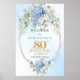 Light Blue Hydrangeas Gold 80th birthday welcome Poster