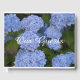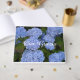 A lovely bush of full blooming light blue hydrangeas. Romantic flowers. Says 'our guests' on the front. This may be changed as desired.