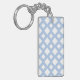 A stylish, geometric pattern featuring a lattice of light blue. The baby blue cross-hatching separates large and small white diamonds.