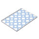 A stylish, geometric pattern featuring a lattice of light blue. The baby blue cross-hatching separates large and small white diamonds.