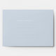 Chic and simple wedding envelope with a light blue jacket and elegant white font. Includes a subtle grey lined area in the front and return address at the back.