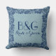Light Blue Linen & Navy Navy Lace Frame Throw Pillow