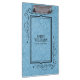 Pastel blue linen texture print with black vintage frame and custom black text. Simple, minimalistic design.