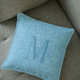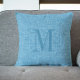 Light blue linen texture monogram throw pillow