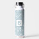 Light Blue Modern Botanical Pattern Monogram Water Bottle