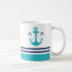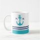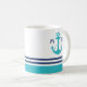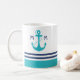 Navy blue and sky blue nautical stripes with anchor and monogram.