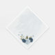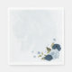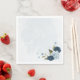 Beautiful romantic paper napkin featuring navy blue and light dusty blue flowers and some pretty leaves .