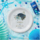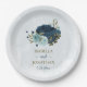 Beautiful romantic paper plates featuring navy blue and light dusty blue flowers and some pretty leaves .