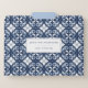 Chic file folder set featuring a white and light blue floral Moroccan pattern with a navy background. Personalize the file folders by adding your custom text such as name, business name, job title, school subject, etc.