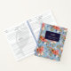 Floral recipe notebook featuring a pattern of hand-drawn flowers in pink and peach against a pale blue background. Personalize with your name in modern white letters on a dark blue label beneath a cute balloon whisk.