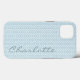This girly phone case features a light blue decorative abstract pattern and is personalized with her name.