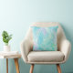 Light Blue Pink Flowers Leaves Botanical Foliage Throw Pillow