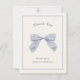 Light Blue Plaid Bow Elegant Baby Shower Thank You Card