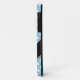 Stylish iPhone 5 case designed with a light blue & white polka dots pattern, and custom printed with your name or text in white over a diagonal black stripe, which makes it easily readable whether you hold your iPhone 5 vertically or horizontally.