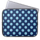 Keep your laptop safe with a zippered neoprene sleeve featuring light blue polka dots outlined in white on a dark blue background.