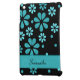 Light Blue Retro Flowers On Black background adds a touch of uniqueness and a trendy look to your ipad mini case.Personalize your ipad mini case with your name or initials.Use the 'customize it' feature to edit text font,color or size.More colors are available in this design.