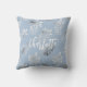 Light blue silver foliage botanical name script throw pillow